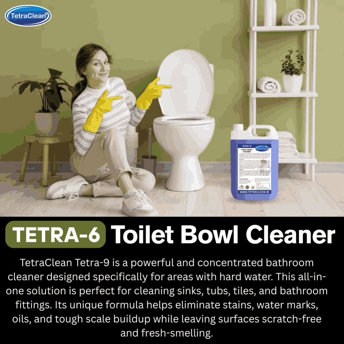 TetraClean Tetra6 Toilet Bowl Cleaner | Removes Tough Stains & Kills 99.9% Germs | Deep Cleaning & Odor Control Formula