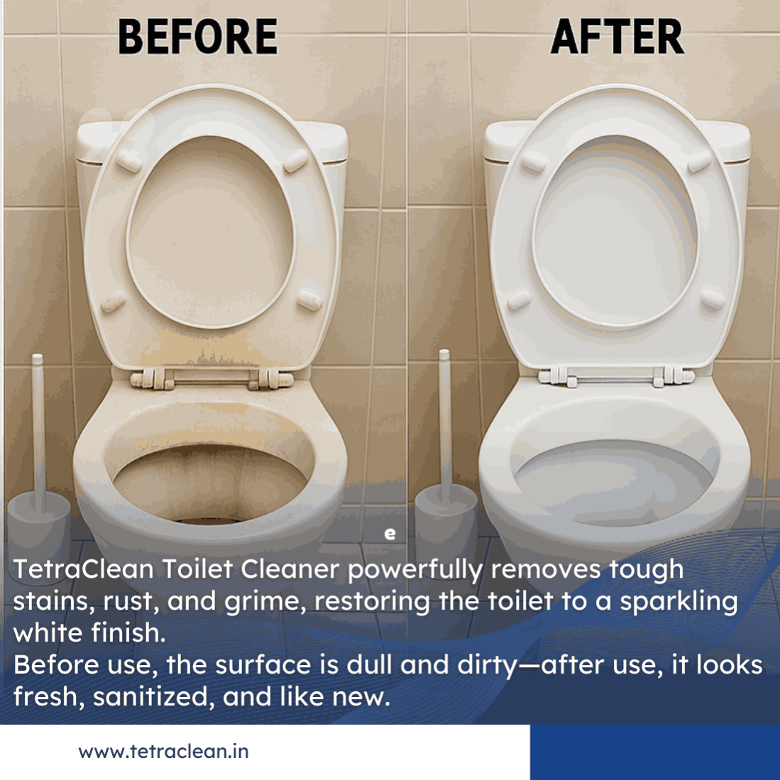 Achieve a sparkling clean toilet with Tetraclean Tetra6 Toilet Bowl Cleaner, the ultimate toilet cleaner designed to remove tough stains, kill 99.9% germs, and neutralize odors. This powerful toilet cleaner deeply cleans toilet bowls, urinals, and bathroom surfaces, eliminating hard water stains, limescale, rust, and bacteria.