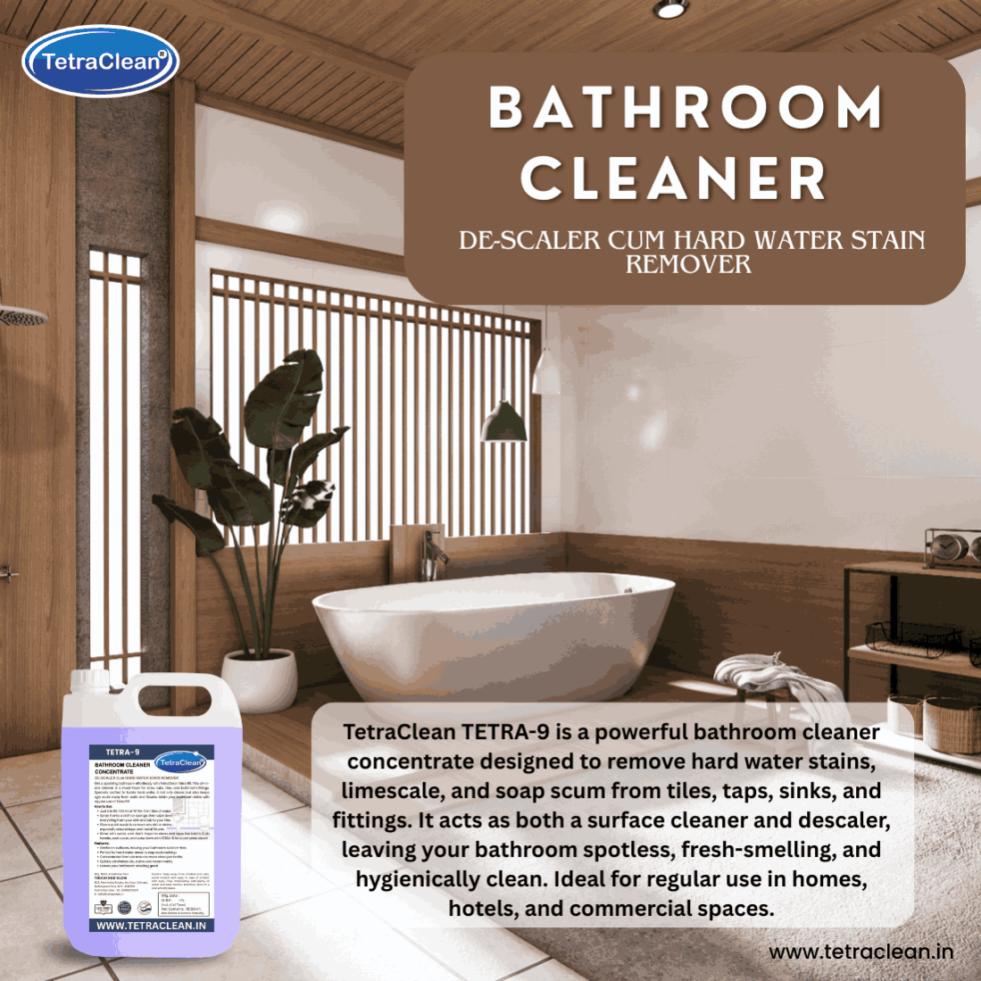 TetraClean TETRA-9 Bathroom Cleaner is a powerful concentrate that removes hard water stains, limescale, and soap scum from tiles, taps, sinks, and fittings. Its scratch-free, fresh-smelling formula ensures a spotless and hygienic bathroom.