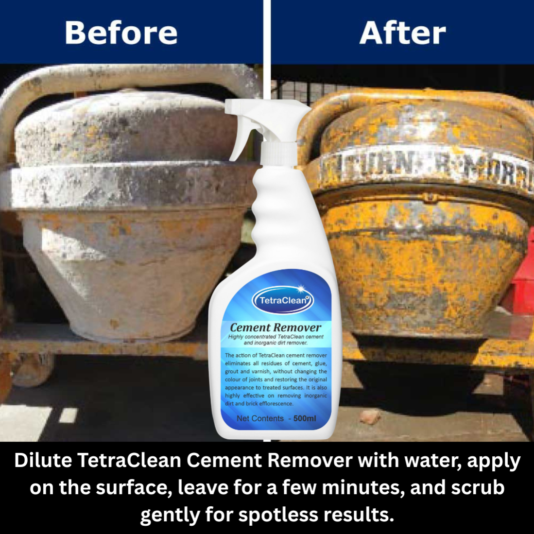 TetraClean Cement Remover I 500ML – Powerful Cleaner for Cement, Grout & Inorganic Dirt I Cement Remover | Heavy Duty Cement & Grout Stain Cleaner
