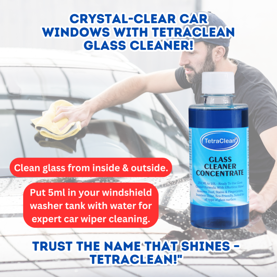 TetraClean Ultra Shine Glass Cleaner delivers streak-free clarity by removing dust, fingerprints, and stains instantly. Suitable for all glass surfaces for a spotless, glossy finish