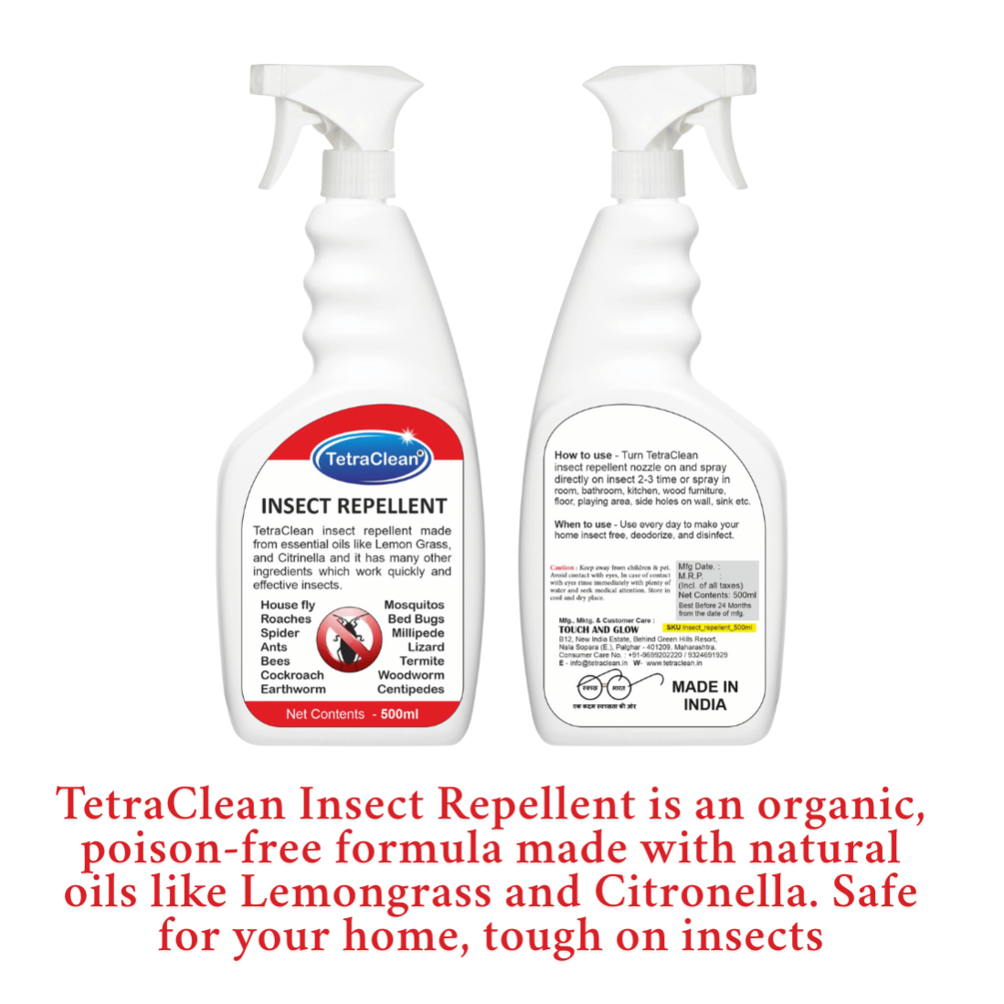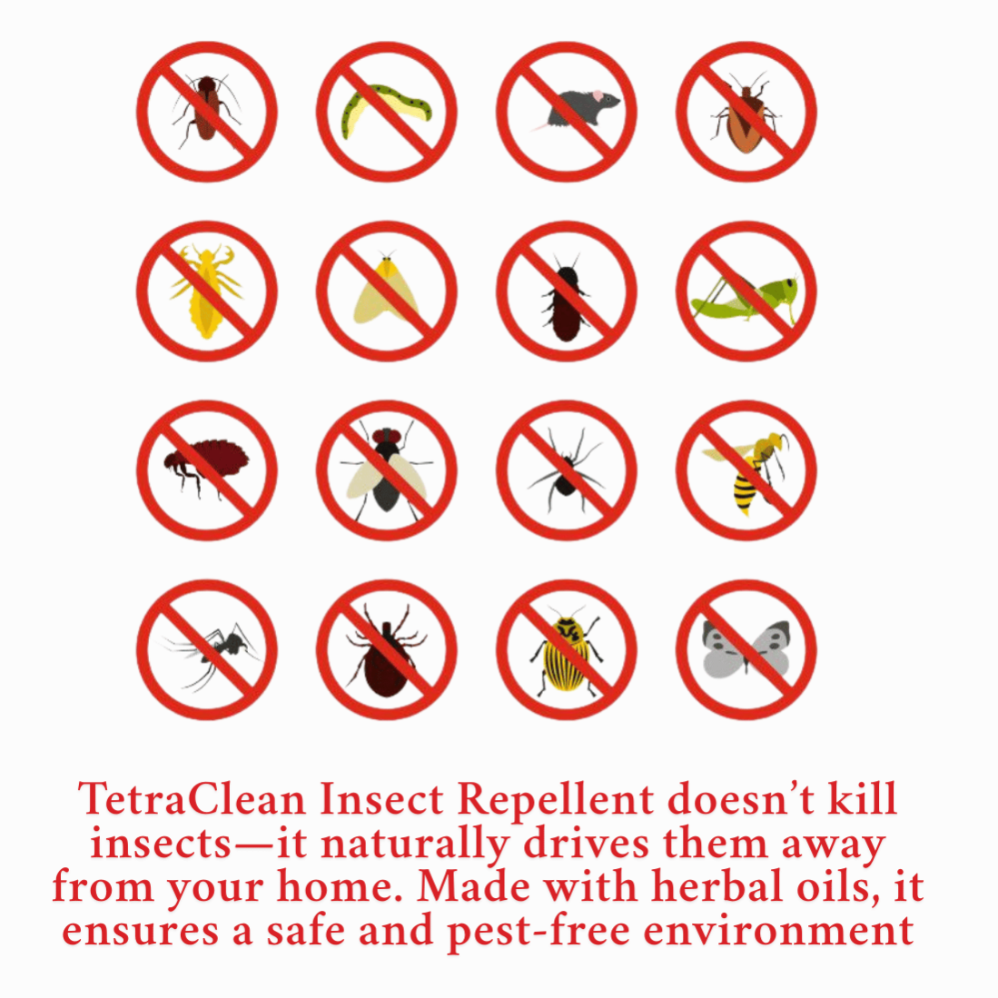 Keep your home and surroundings safe with Tetraclean Insect Repellent. Formulated with effective ingredients, it provides reliable protection against mosquitoes, flies, cockroaches, and other insects. Its fast-action formula not only repels insects but also ensures a fresh and hygienic environment. Suitable for indoor and outdoor use, it is safe, easy to apply, and leaves no harmful residues. Whether at home, office, or outdoors, this insect repellent keeps you and your family protected from insect bites and insect-borne diseases.