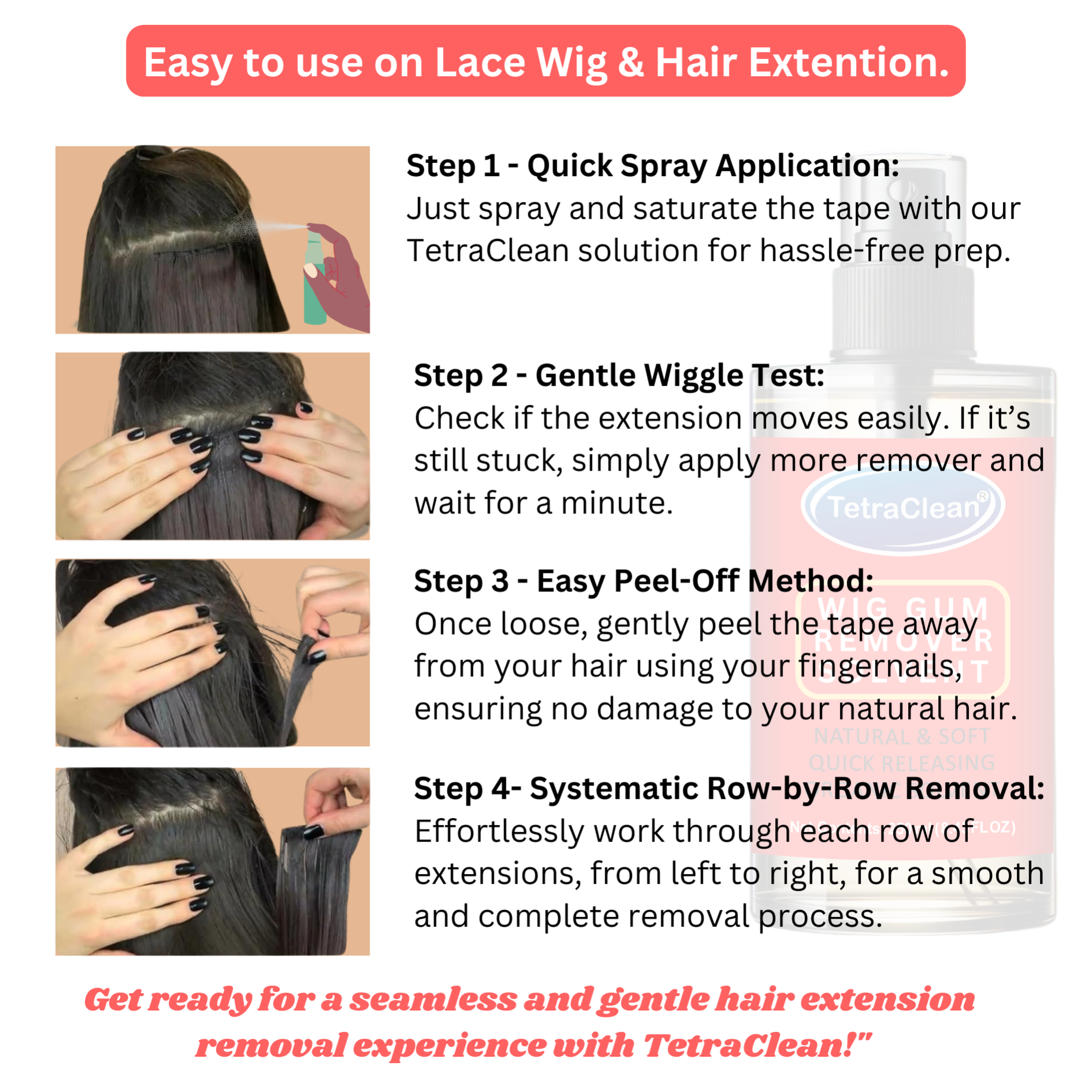 TetraClean Wig Gum Remover Solvent delivers fast, gentle, and residue-free removal of wigs, extensions, and hair patches with its natural citrus-based formula—safe on skin and effective on all adhesives.