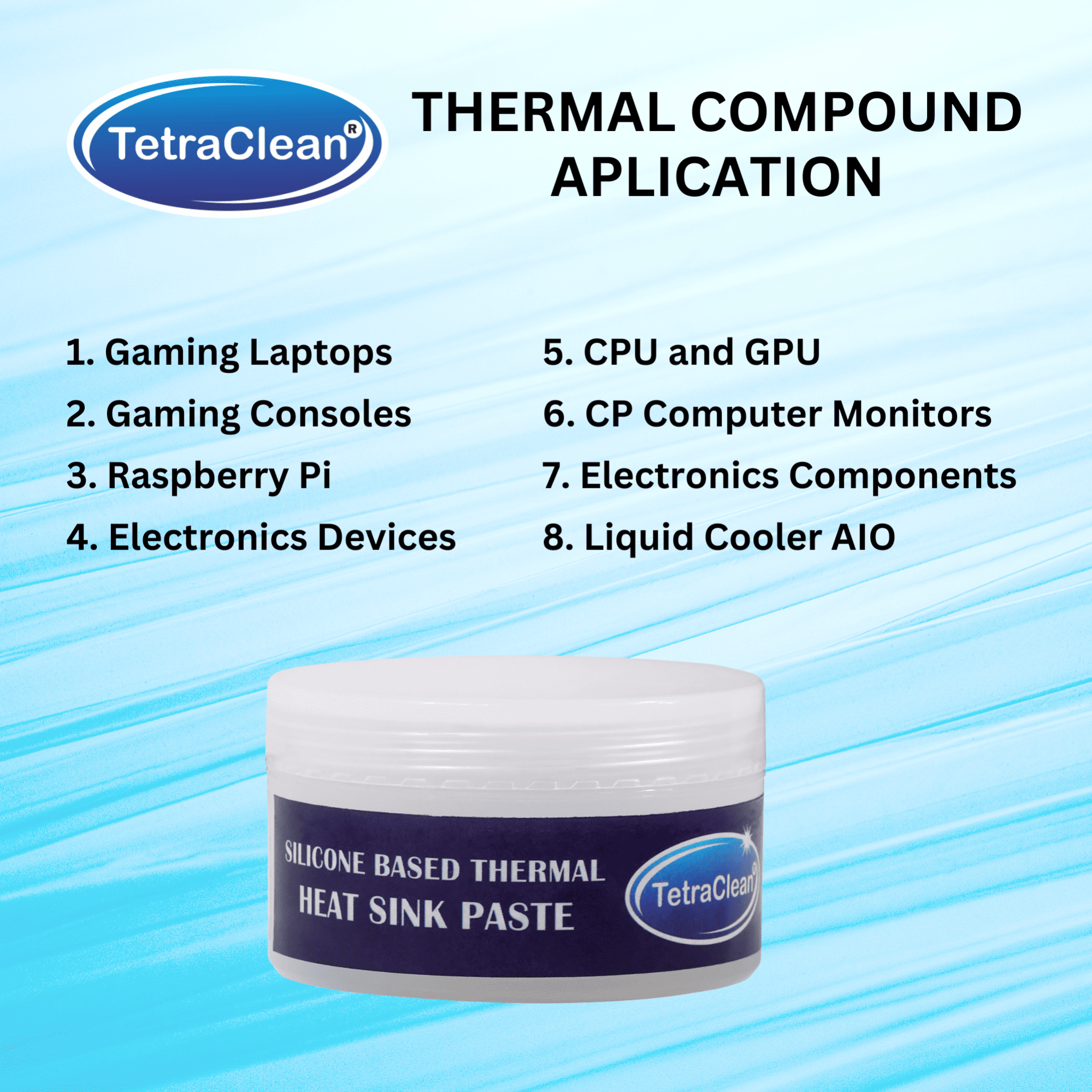 Keep your devices cool and performing at their best with TetraClean Silicone-Based Thermal Heat Sink Paste, a premium-quality thermal compound designed for CPUs, GPUs, gaming laptops, consoles, and electronic components.