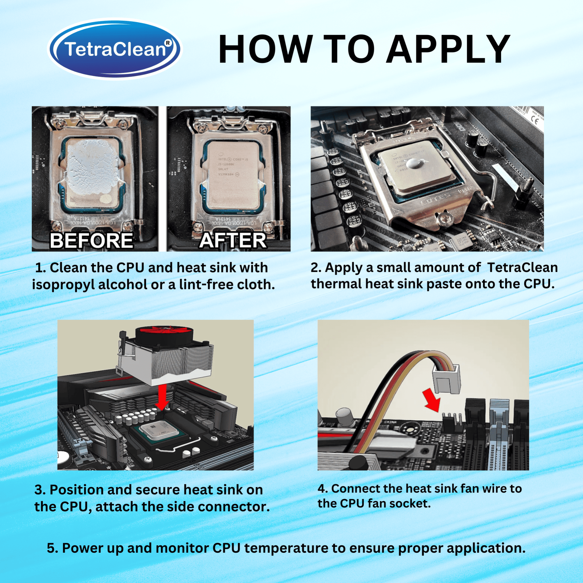 Apply a small amount of TetraClean Heat Sink Paste onto the CPU.