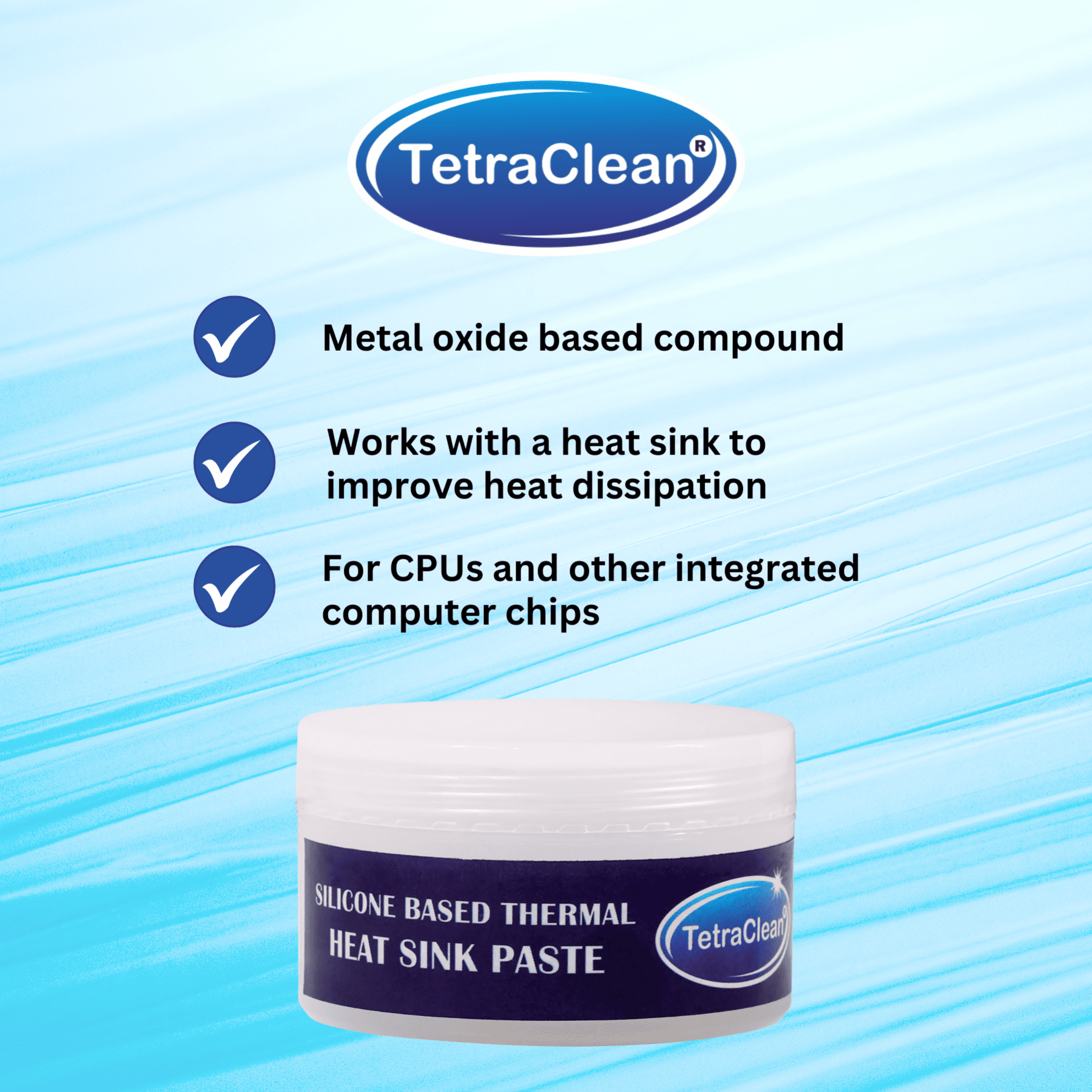TetraClean Silicone-Based Thermal Heat Sink Paste – High Performance Metal Oxide Compound for CPU, GPU, Laptop & Electronic Components – Efficient Heat Transfer & Cooling Solution (Silicone Thermal Compound)-50g